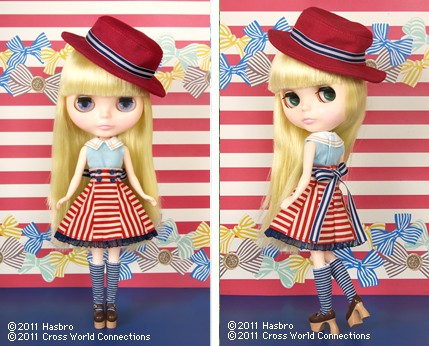 Neo Blythe doll Border Spirit *FREE SHIPPING FEE* My name is Tippy Border and I'm a tap dancer. I'm getting called next for this important dance competition. I'm going to tip my hat and dance my heart out with my spirit and joy! Tippy wears a very fashionable striped stage outfit for her audition! It consists of a sleeveless blouse and a red striped skirt. The skirt has a button on the waist and back, with a cute dark-blue striped ribbon attached. Her red Can Can hat is her favorite, the ribbon on her hat is also striped, just like the ribbon on her skirt. She is wearing striped socks and Mary Jane shoes! Her long hair is blond with bangs, her eye shadow is brown, her cheeks and lips are pink. Her eyes are light-blue, light-green, light-purple, and smoky-brown, all of them are special colors! Her face type is Radiance and her skin type is Natural Skin. Release Date: 2011 September We accept payment by PAYPAL, VISA and WESTERN UNION Thank you. Please don't hesitate to contact us at cctoyshop@yahoo.com.hk if you have any question about this product.