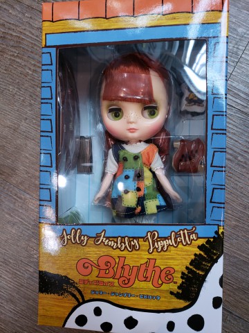 Hasbro Middie Blythe doll Jolly Jumbly Pippilotta *FREE SHIPPING FEE* With a blazing red head of hair and a face full of freckles, Middie Blythe Jolly Jumbly Pippilotta is coming to town! I'm back from traveling around the world in my Daddy's ship. I hate sitting still and I don't know much when it comes to manners, but I am great at surprising the people around me. So what shall we do to play next? Jolly Jumbly Pippilotta wears a patchwork, no-sleeve jumper skirt with a light gray t-shirt, bloomers, along with her trademark mismatched long socks. Her socks are black and light brown, and is worn with a pair of large 4 strap shoes. On her head is her mascot monkey in the form of a head accessory. The papercraft trunk is completed by adding a ribbon as a handle. Her face color is fair, and her red hair is cut straight across the bangs. Her eyeshadow is green, and her cheeks and nose are sun-tanned salmon pink with brown freckles, and salmon pink lips. Her eyes are yellow green. Face Type: Middie Blythe Face Color: Fair Makeup: Green eyeshadow, Salmon pink lip, Sun-tanned/freckled cheek/nose Eye Color: Yellow green Eyelid: Default Eyelash: Default Hair Color: Red Earrings: N/A Manicure: N/A Set Includes: Doll, jumper skirt, t-shirt, head accessory, bloomers, socks, shoes, stand, and papercraft suitcase Release date: November 30 (Fri), 2018 We accept payment by PAYPAL, VISA and WESTERN UNION Thank you. Please don't hesitate to contact us at cctoyshop@yahoo.com.hk if you have any question about this product.