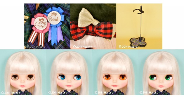 Neo Blythe “Cadence Majorette” is the new military chic girl! *FREE SHIPPING FEE* It's time to show off your special baton twirling at the parade! Wearing your sharp costume you feel sharp and proud. Watch her twirl the baton around and around! The elegant combination of girly and military style express the lovely style of majorette for Cadence. The drop waist of her uniform is accented with lovely pleats and a sharp collar and cuffs. The deep purple and green check dress show her spirit along with the two accenting ribbons. She has striped socks and four strap shoes. Her fun cap really tops off the outfit with a unique military flare. She has long, white hair with bangs. She has natural makeup with brown eyeshadow, and pink cheeks and lips. She has special light brown eye chips facing forward. She has a Radiance + face in fair color. Face Type: Radiance + Skin: Fair Makeup: Brown eyeshadow, pink lip and blush. Eye Color: Brown, blue, orange and green. Hair Color: Off White The Set Includes: Doll, dress, hat, shoes, socks, shorts, and stand. Release Date: October 17, 2014 We accept payment by PAYPAL, VISA and WESTERN UNION Thank you. Please don't hesitate to contact us at cctoyshop@yahoo.com.hk if you have any question about this product.