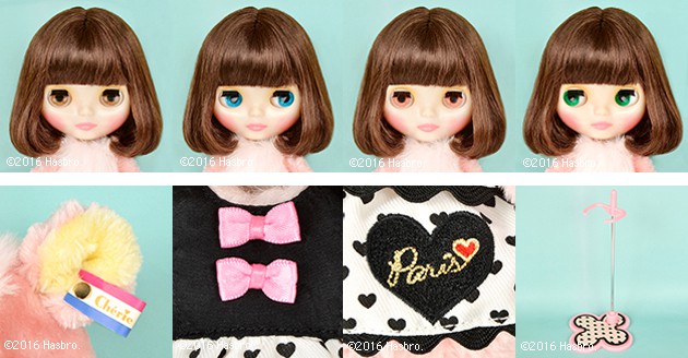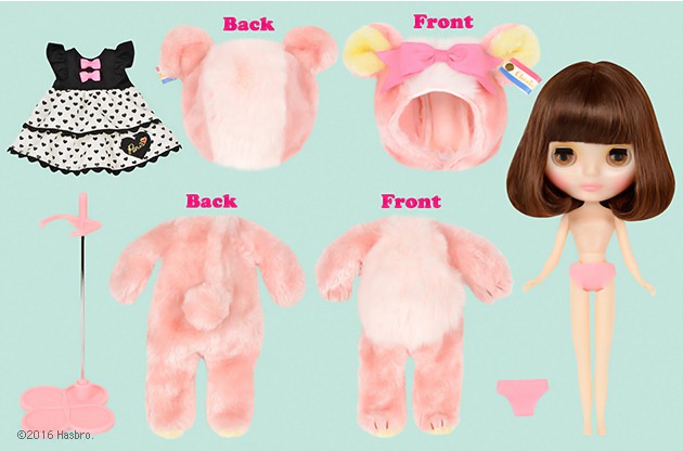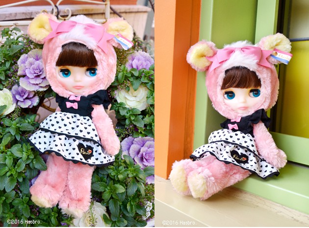 Hasbro Takara Top Shop Exclusive neo Blythe Cherie Babette *FREE SHIPPING FEE* *Shipping address are subject to the address of your PayPal transaction. A Blythe in a bear kigurumi is so huggable! Neo Blythe, Cherie Babette final specs! Round and soft, her silhouette is just like a small bear cub! But she isn't just cute, but fashionable too! Combining french fashion and her adorable looks, she takes walks in the city of Paris in the evening. This Top Shop Exclusive Neo Blythe's charm points are her fluffy kigurumi, heart patterned jumper skirt, and her cute, funny face. The kigurumi an over-all that covers the entire body with a cap, made to give the body a fluffy look. We used two fur lengths for the different colors, and added cushioning to the tummy and behind. Her arms and fingers have an added yellow fur color and the over all silhouette is relaxed and three dimensional look to it. Her jumper skirt is decorated with a heart pattern and a gold applique of the word Paris, her favorite city in the world, as well as two pink satin ribbons adorning her chest. Sherry Babbette uses the first ever translucent cream skin of the Fairest variety. Her puffy lips are also a first for Fairest. Her brown hair is bobbed short, which is adorable and handy if you want to put the cap on. She also wears brown eye shadow, a healthy pink color for the cheeks, light pink puffy lips, and a special brown color for one of the eye chips. Face type: Fairest Skin type: Translucent Fair Make up: Eye shadow: Light Brown, Lips: Light pink (puffy mask), Cheeks: pink Eye color: Blue (right), Brown (front, special), Green (left), Pink (front) Hair color: Brown Eye lashes: Default Ear rings: N/A Manicure: N/A Set includes: doll, kigurumi (over-alls, cap), jumper skirt, shorts, stand Release Date: February 12th, 2016 (Fri) We accept payment by PAYPAL, VISA and WESTERN UNION Thank you. Please don't hesitate to contact us at cctoyshop@yahoo.com.hk if you have any question about this product.
