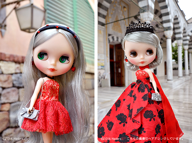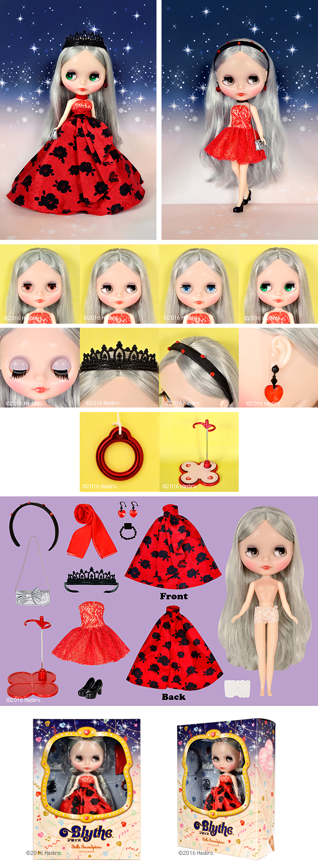 Hasbro Exclusive neo Blythe doll Stella Serendipitous *FREE SHIPPING FEE* *Shipping address are subject to the address of your Paypal transaction. I’m going to dress up really nice for my friends 15th anniversary party! Habro Exclusive Neo Blythe Stella Serendipitous is here! Stella is Allegra Champagnes best friend, they’re always seen together. For the formal, she wears red long dress with a black rose detail. The top is a gold and red lace bustier, and her skirt is glossy red with more rose details and a two layered train flowing down the back. Her accessories are also selected to compliment the gorgeous red dress. Her tiara, cut bead choker, chic black heels, and heart shaped ear rings are perfect to stand out in a party. The red shawl and silver detailed clutch bag completes the look. Her dress is able to be taken apart into two ways. One without an over-skirt and one with. Stella Serendipitous’ semi formal look consists of a gold satin and red laced low waist dress, perfect for the gallery show or at a concert! The red rhinestone accented tiara and shawl can be arranged in a variety of styles! Her face type is Radiance+, and her face color is cream. Her custom silver hair is parted down the center. Her eye shadow is purple, her lips around the edges are lined, surrounding a gentle rose pink color. The custom eyeliner around her eyes is great for changing her expression. Face type: Radiance+ Skin Type: Translucent Cream (light skin) Make up: purple eyeshadow, rose pink lips, pink cheeks Eye color: Light purple (front, special), Light gray (right, special), Light blue (front, special), Green (left) Eye lids: Purple (special color) Eyelashes: black (special color) Hair color: silver gray Earrings: heart shaped hook earrings Manicure: n/a Eyelids: default Eyelashes: default Set includes: doll, dress, over skirt, shorts, tiara, head band, earrings, choker, shawl, bag, shoes, stand(short stand for dress. height11.5cm) Release: November 18th 2016 (fri) We accept payment by PAYPAL, VISA and WESTERN UNION Thank you. Please don't hesitate to contact us at cctoyshop@yahoo.com.hk if you have any question about this product.