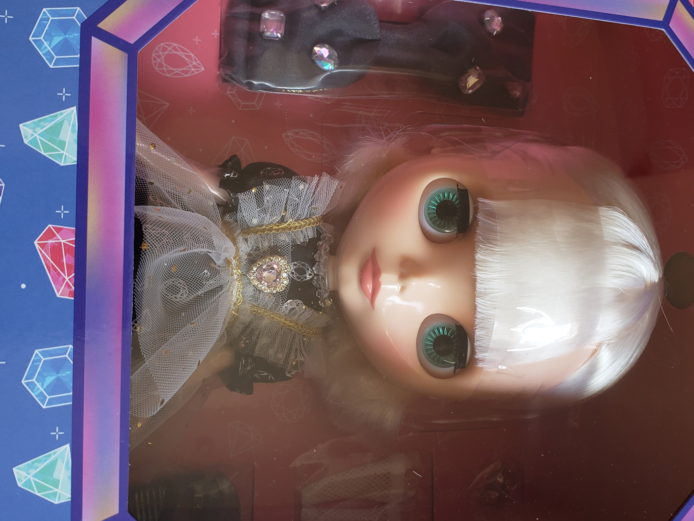 Neo Blythe “Bijou Brilliant” Final Specs! *FREE SHIPPING FEE* *Shipping address are subject to the address of your PayPal transaction. I love sparkling gems. They make me feel pretty and special, especially when I wear them. From diamonds to rubies and emeralds to sapphire, I can't live without these precious stones. The bijou makes my wardrobe shiny and that makes me happy. A dazzling fashion look that sparkles like a treasure chest of gems! The dress features an illustration of glittering bijoux, printed with aurora foil that shimmers like real gemstones. Inside the skirt, soft tulle adds volume, creating a gentle, flared silhouette that’s full of charm. The headband is a showstopper—two different fabrics layered into a ribbon shape, topped with a big, sparkling bijou for a glamorous touch. The tulle apron is sprinkled with gold polka dots and has a sweet heart-shaped bijou at the chest for extra sparkle. To finish the look, metallic gray strap shoes and short tulle socks add just the right touch of elegance and shine. ✨ Face Type: Radiance Evolution Face Color: Fair Makeup Eyeshadow: Light Brown Lip: Coral Pink Blush: Pink Eye Color: Blue (right), Blue Green (front *special color), Green (left), Pink (front) Eyelid: Default Eyelashes: Default/Black Hair Color: Yellowish white Piercing: Hook type / Clear bijoux Manicure: Dusty Pink Set Contents Doll, Dress, Apron, Hair band, Socks, Pants, Shoes, Stand (waist holder) We accept payment by PAYPAL, VISA and WESTERN UNION Thank you. Please don't hesitate to contact us at cctoyshop@yahoo.com.hk if you have any question about this product.
