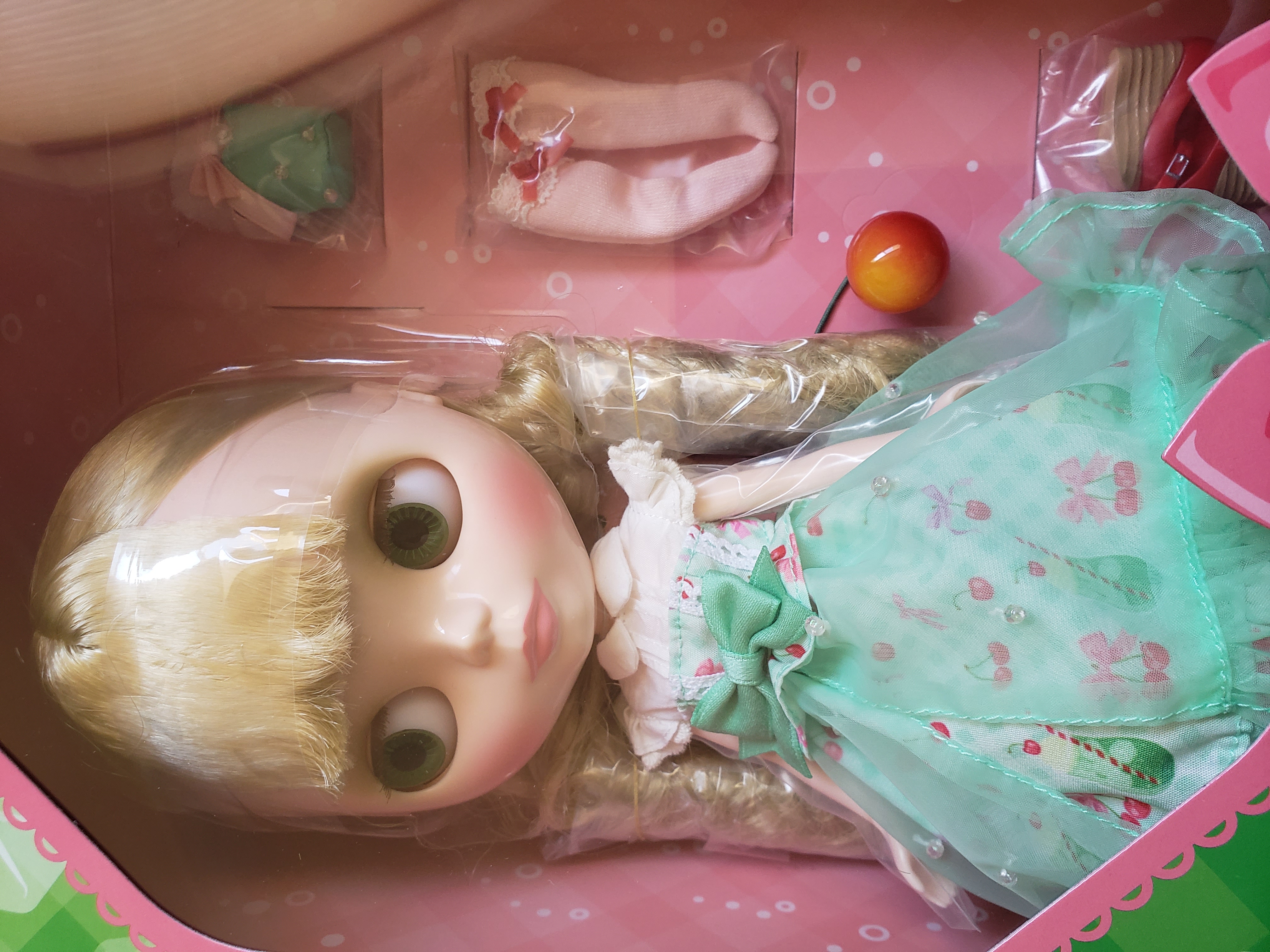 We are pleased to announce the final specifications for the TOPSHOP limited edition Neo Blythe “Creamy Cherry Sweetheart”. *FREE SHIPPING FEE* *Shipping address are subject to the address of your PayPal transaction. The summer heat is back, but I'll beat it with a delicious cream soda, crowned with ice cream and a juicy cherry on top. The sweetness melts perfectly with the fizzy bubbles, making every sip a refreshing treat! Sweeten your summer with a new doll inspired by the nostalgic charm of Japanese cream soda! In Japan, cream soda is a beloved childhood treat: a bright green soda topped with vanilla ice cream and a red cherry. Now, this delightful image has been transformed into an adorable doll outfit. The "Creamy Cherry Sweetheart" fashion features a one-piece dress and half bonnet made from custom-printed fabric with cream sodas and cherries. The skirt has an organza overlay sprinkled with beads that shimmer like soda bubbles. The bonnet is designed with a large green ribbon under the brim, and small ribbons and cherry decorations on the sides add a romantic touch. Her red strap shoes and pink socks complete this sweet, retro-inspired look. Don't miss the unique accessories: a cream soda-shaped bag and a cherry-shaped pull ring! Face Type: Radiance Evolution Face Color: Cream Makeup: -Eyeshadow: Spring Green -Lips: Pink (with a plump shape) -Blush: Pink Eye Colors: -Right: Blue -Front: Green (special color) -Left: Light Green (special color) -Front: Pink Eyelids: Beige (mold color) Eyelashes: Special specification / Brown Hair Color: Blonde Earrings: None Nail Polish: Pink Included Items: -Doll, one-piece dress, half bonnet, petticoat, socks, bag, underwear, shoes, stand (waist support) Release Date: Friday, June 27, 2025 We accept payment by PAYPAL, VISA and WESTERN UNION Thank you. Please don't hesitate to contact us at cctoyshop@yahoo.com.hk if you have any question about this product.