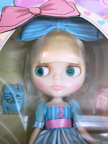 CWC Ex. Neo Blythe “Hello Again Junie Moonie Cutie” illustration announced! *FREE SHIPPING FEE* *Shipping address are subject to the address of your PayPal transaction. ※ We do not ship this item for local area (HK) and China※ We are delighted to announce that Junie Moonie Cutie, the popular cover girl for the Junie Moon shop, is back in a new way. In response to the many requests from her fans, she returns to the limelight in a new color way. Her updated name is “Hello Again Junie Moonie Cutie”. She’s fresh new girl with blue fashion point clothing! “Hello Junie! You are always so cute and kind. You are a special person who brings happiness to many people. We look forward to playing with you again! I will always cherish you for connecting my heart and mind.” The fashion of “hello again Junie Moonie Cutie” is a sweet pink and blue color coordination. The dress has light blue and blue stripes. The sleeves are sheer puff sleeves. The skirt is embroidered with the “Junie Moon” shop logo written by Blythe Creative Producer, Junko Wong. She has pink accent heart buttons, a big bow on the back and pink ricrac hem. Her fashion accessories include a large hair ribbon, blue heart-shaped earrings, high sicks with lace up ribbon print, and a pair of matching shoes. She wears pink and white striped bloomers underneath. Her face type is Radiance Renewal. Her face color is Translucent Cream. Her hairstyle is long, perm with fringe. Her hair color is blonde. She has brown eyeshadow with light brown eyelids. She las pink cheeks. Her lips are pink with a plump shape make up. She has brown front eyes, mint green left eyes, pink with a heart print center front facing, light blue right gaze. * She has four special colors in the same set, The eye change charm is printed with Blythe and Junie Moon logos. The accessories include a miniature-sized shopping bag and paper accessories for the doll packaging, so you can assemble and play with them! * Please note the design image may differ from the final image. Release Date: March 2021 We accept payment by PAYPAL, VISA and WESTERN UNION Thank you. Please don't hesitate to contact us at cctoyshop@yahoo.com.hk if you have any question about this product.