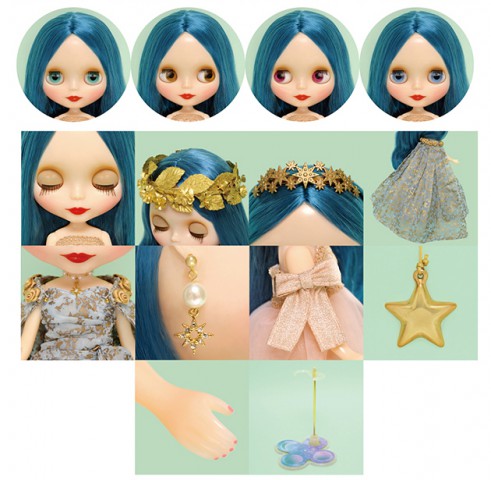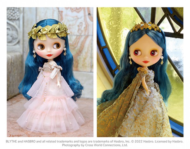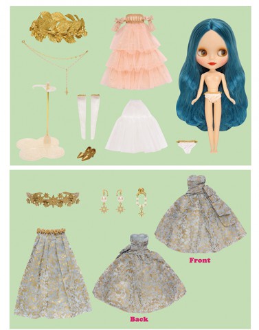 CWC Exclusive 21st Anniversary Neo Blythe “Juno Estella” *FREE SHIPPING FEE* *Shipping address are subject to the address of your PayPal transaction. Venus, goddess of the heavens, twinkles in the pink morning sky. At night the stars in the universe gather together to remind us of the infinite possibilities of tomorrow. It's time to make a wish for all of us, upon the stars. Venus at Dawn Style Pink Dress The combination of pink tulle and gold fabric is beautiful in this long dress. The gold braid on the top, ribbons on both shoulders, and pink cut beads scattered on the tulle skirt express tenderness. Pearl and star motifs are used for the chain belt that accentuates the dress. The head accessory is a crown with gold-colored flowers and leaves that looks beautiful against the ink-blue hair. Evening Star Style Blue Dress This fantastic long dress is made of blue chiffon fabric with gold silk print all over. The asymmetrical draping and folded ribbon-like decorations hanging from the waist give the dress an elegant design. The shoulders of the long cape are adorned with gold curly roses. Head accessories coordinate with the new tiara, which is designed with a scattering of stars★. For accessories, we selected items with gold as the key color that would go with both fashions! Necklace and earrings designed with pearl and star motifs, tulle petticoat, and net tulle high socks with gold picot lace trimmed at the opening, and gold pumps. The face type is Radiance Evolution and the face color is translucent cream. Hair color is Ink Blue, a new color, and hairstyle is long hair with a center parted perm. Makeup is done in an elegant image. The eyeshadow is light brown, the lips are a clear reddish burgundy with gloss, and the blush is pink. The eyelids are light brown (molded color), the same color as the eye shadow, and the eyelashes are special black. All eye colors are set in special colors! Blue-green (front), light brown (right), blue (front), purplish pink (left). Nails are pink. Eye change charms are star motifs. The support and base of the stand are clear and gold, and the prop is gold-colored. Face Type: Radiance Evolution Face Color: Translucent cream. Makeup: Eye shadow: light brown, Lip: wine red (clear type plumping mask), Blush: pink Eye Color: blue green (front), light brown (right), blue (front), pink (left) *All special colors Eyelid: Light brown (molded color) Eyelashes: Special spec black (long eyelashes) Hair color: Ink blue *New color Earrings: Pearl and star motif Manicure: Pink Set includes: Doll, dress (pink and blue), cape, leaf crown, star-shaped tiara, necklace, earrings, chain belt, and a star-shaped tiara, shorts, socks, shoes, short stand (approx. 13 cm high) Release date: 30 September 2022. We accept payment by PAYPAL, VISA and WESTERN UNION Thank you. Please don't hesitate to contact us at cctoyshop@yahoo.com.hk if you have any question about this product.