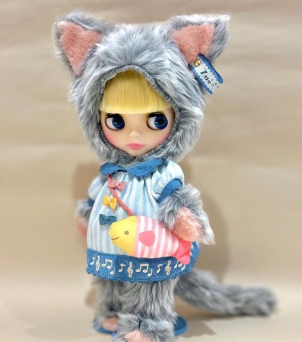 We are pleased to announce the final specifications for the Neo Blythe “Zoey and Her Pet Fish” *. *FREE SHIPPING FEE* *Shipping address are subject to the address of your PayPal transaction. Zoe is a gray cat that has a fish for a pet! She carries her fish around wherever she goes. Zoe also likes to play piano with all four of her paws. But no matter what she does, she never puts her fish down for a second! Zoe and her fish are inseparable! "Zoe and Her Pet Fish" features Blythe, in a cute, fluffy cat costume. The costume comes with the cap with ears and one-piece body made of long-pile gray fur. She has a long tail and fluffy belly. Pink fur for the ears, hands and feet. The cap comes a tag with Zoey's name designed on it. She is wearing a white and blue striped mini-dress with musical note embroidery on the hem of the skirt. A front of the dress is adorn with small multi-color (pink, yellow and blue) ribbons. The yellow, pink, and white coloring. fish-shaped pochette with long strap. Her face type is Radiance Evolution, and her face color is a translucent cream. Her hair color is light-yellow and her hairstyle is bob. For makeup, the eyeshadow is green, the cheeks are pink, and the lips are plump pink. The eye color is a special light-blue color set on one of the front sides. The face type is Radiance Evolution, and the color is translucent cream. The hairstyle is a bob with loose inward curls at the ends. Hair color is light yellow. For the makeup , she is wearing light green for eyeshadow, pink blush, and pink lips in a pouty shape. The eye color is a special light blue color set on one of the fronts★. [Face type] Radiance Evolution [Face color] Translucent cream [Makeup] Eyeshadow: light green, Lip: pink (plump shape), Blush: pink [Eye Color] Orange (front), Green (left) , Light Blue (front *special color), Blue(right) [Eyelid] Default [Eyelashes] Default [Hair Color] Light yellow [Piercing] None [Manicure] None [Set includes] Doll, cat cap, cat costume, dress, pochette, shorts, and stand. This product is intended for ages 15 and up. *Specifications may vary from product to product. Release date: February 23, 2024 (Friday) We accept payment by PAYPAL, VISA and WESTERN UNION Thank you. Please don't hesitate to contact us at cctoyshop@yahoo.com.hk if you have any question about this product.